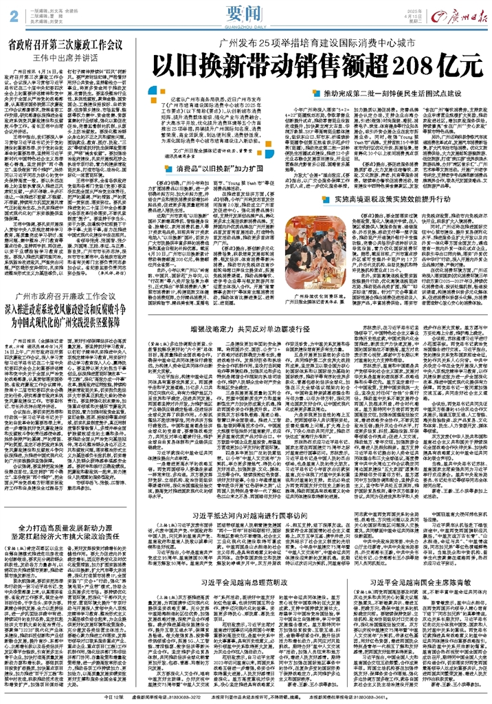 - 深入推进政府系统党风廉政建设和反腐败斗争为中国式现代化的广州实践提供坚强保障 广州日报讯 (全媒体记者贾政、方晴 通讯员穗府信)4月14日上午,广州市政府召开第四次廉政工作会议,深入学习贯彻习近平总书记在二十届中央纪委四次全会上的重要讲话精神和党中央关于全面从严治党的战略