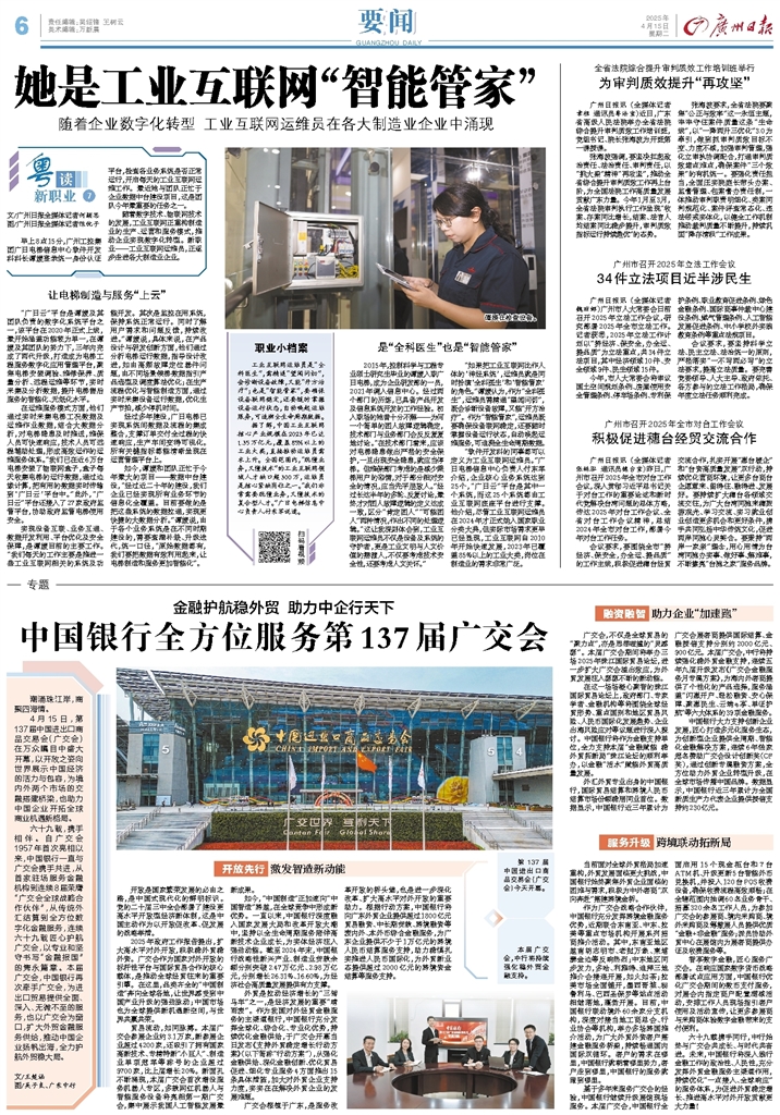 - 中国银行全方位服务第137届广交会 潮涌珠江岸,商聚四海情。 4月15日,第137届中国进出口商品交易会(广交会)在万众瞩目中盛大开幕,以开放之姿向世界展示中国经济的活力与包容,为境内外两个市场的交融搭建桥梁,也助力中国企业开拓