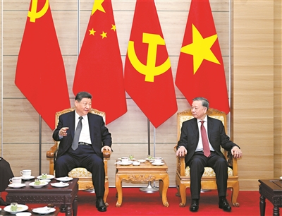 习近平指出,这次访问时间虽短,但活动丰富、成果丰硕。双方重申共同壮大世界社会主义事业的政治意愿,都期待朝着“六个更”总体目标全面推进两国战略合作,都表示抵御外部风险挑战,维护地区和平稳定和国际公平正义。我对中越关系发展前景充满信心。双方要全面落实这次访问成果,持续推进中越命运共同体建设。