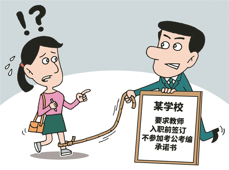 近日,安徽某教育集团要求教师签署“不参加考公考编承诺书”事件引发舆论哗然。劳动者享有平等就业和选择职业的权利,以“稳定师资”为由强制教师放弃考公考编,本质是将单位利益凌驾于法律之上。看似“自愿”的签约,实则是以就业机会为要挟的变相胁迫——要么接受不平等条款,要么面临职场边缘化甚至失业风险。这种“霸王条款”与契约精神背道而驰,暴露了用人单位对劳动者基本权利的漠视,也照见了其在人力资源管理上的短视与傲慢。当前,该行为虽已被当地通报叫停,但其暴露的职场霸权与劳动者权益保护问题仍然值得深思。 (时忱)