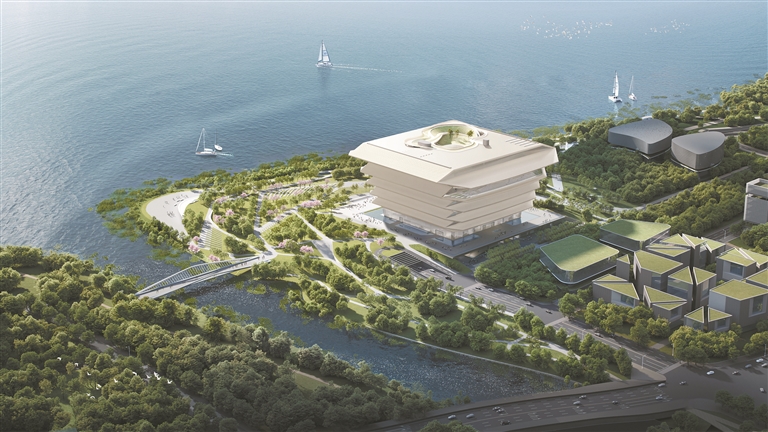 “这座建筑宛如生长在山海之间的一棵文明之树,主体结构由中间的8个核心筒和外围12 根向外倾斜的钢结构柱子构成。造型汲取了重檐飞扬与刚刚打开的庆典灯笼的意象,体现了浓厚的中国文化特色。同时,建筑的中庭和空中观景台都朝着山海敞开,营造了极具开放共享特性的都市立体文化客厅。”华南理工大学建筑设计研究院何镜堂创作院副院长、前海博物馆项目设计总负责人张振辉接受本报记者专访时表示。