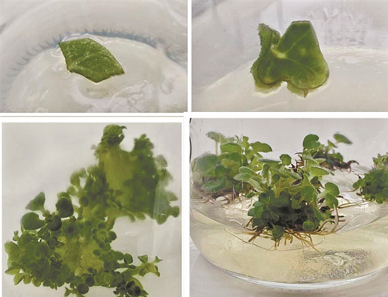 “经过多次实验,研究中使用的诱导培养基和增殖培养基植物生长调节剂,为组培苗的生长提供了良好的条件,成活率达到了100%,为丹霞小花苣苔的野外回归种植提供了有力的技术支持。”
