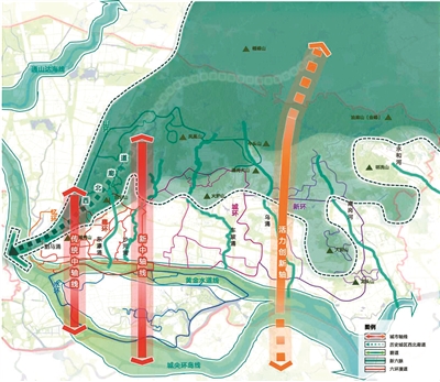 “云山链”一脉枕三轴,是广州传统中轴线、新中轴线、活力创新轴的共同北部发端,北系云山、南链花地、西续佛山,通江达海,契合与拓展“一带一轴、三核四极”广州城镇空间结构,支撑广佛全域同城化战略空间关联。
