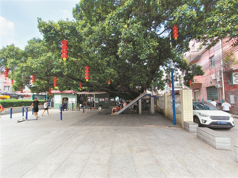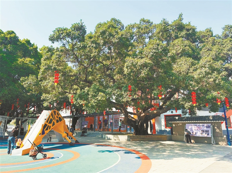 在历经一场全方位的“微改造,精提升”绣花行动后,如今的石岗公园焕然一新。孩子们在滑梯尽情玩耍,在园内自由追逐嬉戏。公园一侧,苍劲挺拔的古榕枝干遒劲,绿叶如盖,见证了自然与历史的深度交融,承载着岁月的厚重与温情。另一侧,石岗记忆墙静静伫立,生动的图文记录着村史文化,向往来游客诉说往昔故事,为街区、社区注入更多活力和魅力。