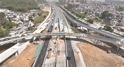 广州日报讯 (全媒体记者曾焕阳 通讯员刘志浩、唐新江、赵崇敏摄影报道)随着最后一节钢梁精准就位,粤赣高速(又称长深高速)河惠段改扩建项目城北互通C匝道桥钢梁近日提前实现合龙,这标志着该处互通新建匝道现已全线贯通,将于4月30日开放通行。城北互通位于河源市源城区,共有6条匝道,该互通采取原址原“T”形的改造升级方案,原匝道实施移位重建,城北站将由12条车道升级为19条车道。
