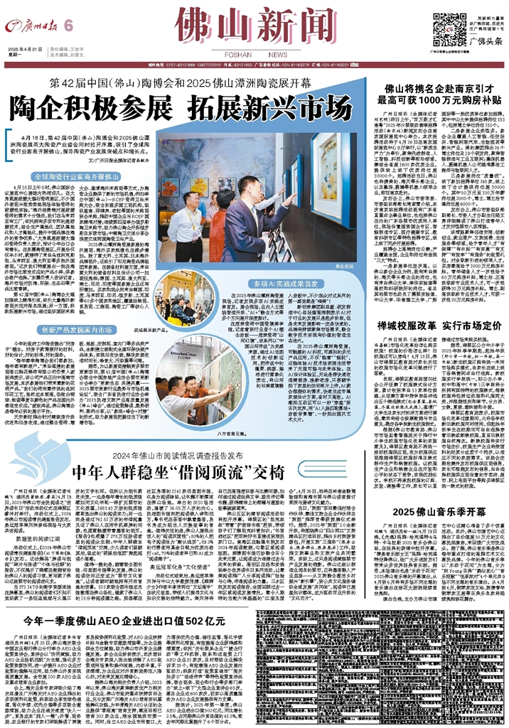 - 中年人群稳坐“借阅顶流”交椅 广州日报讯 (全媒体记者刘鹏飞 通讯员曾雅君、廖菲)4月19日,2025年佛山市全民阅读之“世界读书日”活动启动仪式在禅城区黎冲村举行。启动仪式上,2024年佛山市阅读情况调查报告发布,奥运冠军焦
