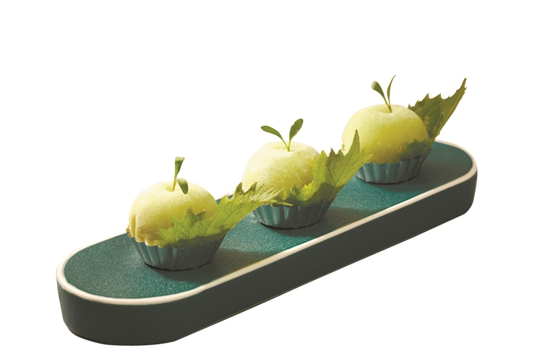 以鲜嫩青苹果造型出现的雪媚娘,见过吗?软糯中透着丝丝甜意,将冰皮的Q弹柔韧、内馅奶油的绵密、当季水果的清新完美融合,酸甜交织,口感丰富有层次。而在此,可千万不能错过舒孚蕾,以蛋白打发与蛋黄糊巧妙融合,经精准控温烘烤而成。成品蓬松轻盈如云朵,外表微脆,内里柔软绵密,入口即化,弥漫着浓郁蛋奶香气。