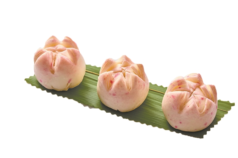 “粤海三珍”——非遗虾饺、碧绿上素卷、像形荷花包,那荷花包惟妙惟肖,这道点心的创作灵感源自一池潋滟荷影,在海珠湿地公园分布千亩荷塘。状似荷花的包点,粉白面皮以果蔬汁晕染出渐变,内里的馅料莲蓉流沙绵密清甜。