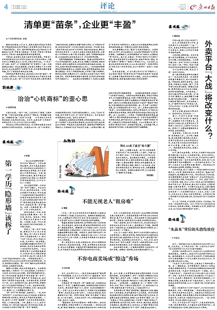 无形的价值,更令人期待——回看互联网行业的发展历史,从电商、团购到网约车、共享单车,“烧钱大战”此起彼伏,跑马圈地争斗不休。但电商也好,外卖也罢,其发展逻辑都不应该是“流量为王”,而应是价值共创,不应该是算法压榨,而是造福于人。京东、美团“交战”,不只有热闹、喧嚣,更让人们沉心思考:我们究竟需要怎样的外卖平台?简单来说,要让用户吃得好、让商家有钱赚、让骑手有尊严。仅以骑手权益来说,为骑手缴纳社保,不仅是成本问题,更需要商业模式的调整、价值理念的更新——不是将骑手视为人力成本,而是人力资本;不是作为巨大负担,而是宝贵财富。让穿梭在大街小巷的骑手们没有后顾之忧,这本就是外卖平台该有的样子。