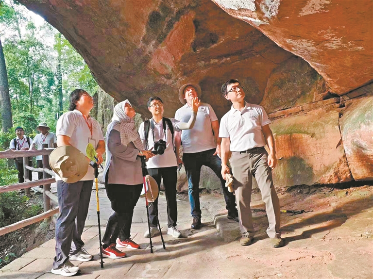去年7月,联合国教科文组织派出来自德国的亨宁·泽尔默和马来西亚的拉莎努巴里两位评估专家对丹霞山世界地质公园进行了为期5天的实地评估,复核过去4年丹霞山世界地质公园的阶段性工作。在最炎热的季节,专家们登长老峰,探翔龙湖,白天考察景区,夜晚考察社区,全面了解丹霞山公园在丹霞地貌保护利用、园内乡村共建共享、生态旅游产业发展和自然教育科普产业培育等方面的创新实践,感受到丹霞山世界地质公园大家庭的魅力。