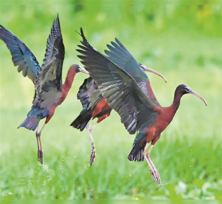 近日,这片生态福地迎来了一批珍贵的“稀客”——7只国家一级保护野生动物彩鹮。据山塘镇农林水综合服务中心工作人员介绍,这些彩鹮已在清远停留近一个月,可见它们对这片土地的喜爱。彩鹮被誉为“鸟中大熊猫”,其羽毛色彩绚丽,极具观赏性,它们的出现,震动观鸟圈,还让清新区荣登央视报道。