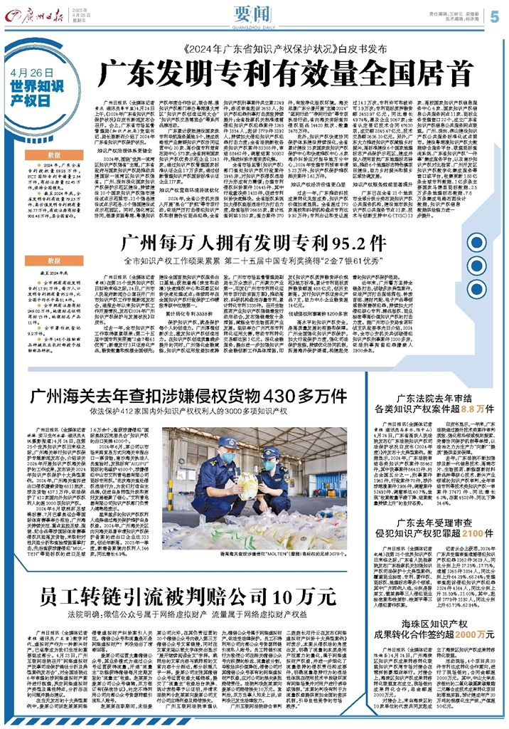 广州日报 4月26日世界知识产权日 A5 2025-04-251 2025年04月25日 星期五