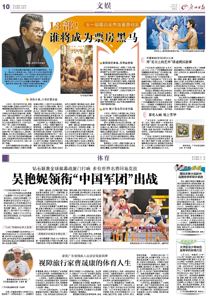 - 吴艳妮领衔“中国军团”出战 广州日报全媒体记者 白志标 2025世界田联钻石联赛厦门站赛事4月26日将于白鹭体育场举办,这是钻石联赛第二次将赛季首站安排在中国进行。根据组委会公布的参赛选手名单,多名世界冠军和奥运冠军将亮