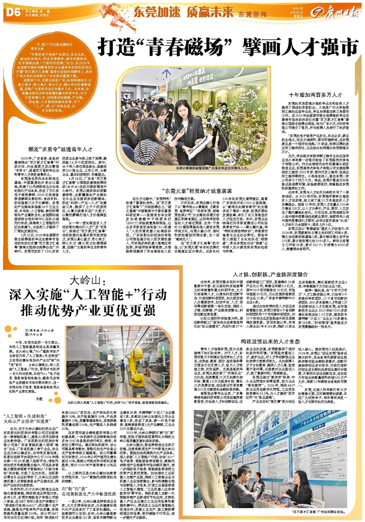 - 打造“青春磁场” 擘画人才强市 文、图/广州日报全媒体记者李直建 “东莞的电子信息产业发达,名企众多,就业机会很大,而且交通便利、城市环境舒适,在东莞就业是一个很好的选择。”近日,在2025年全国城市联合招聘高校毕业生春季专