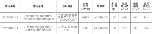 经广州市南沙区人民政府批准,广州市规划和自然资源局南沙区分局公开挂牌出让2宗国有建设用地使用权。