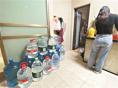 也有村民对于井水的水质有一定担忧。“水井抽出来的水我们只用来洗衣服洗菜搞卫生用。”住户邹女士说,她家同样打了深水井,但担心杂质比较多,每周会到村外取水喝。走进邹女士家厨房,在洗菜池一侧放着十余个装满水的塑料水桶。她表示,这些水主要是用来喝水、泡茶以及煮饭。