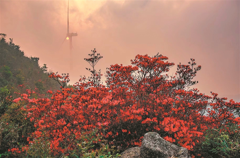 广州日报讯 (全媒体记者关家玉 通讯员陈子楷、卢文生摄影报道)近日,“中国李乡”粤西茂名信宜市钱排高山风电场上连片的野生杜鹃花又盛开了,仿若专为“五一”假期梦幻上线!