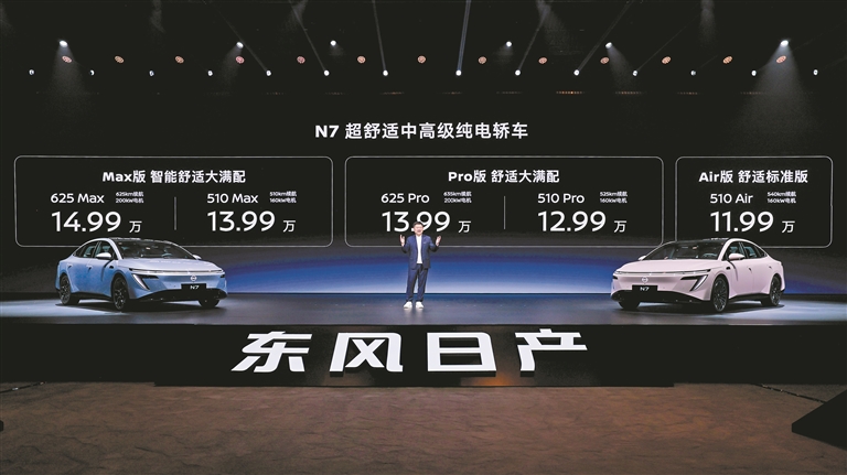 4月27日,面向中国主流家庭的“中高级超舒适纯电轿车”——东风日产N7正式上市,共分为Max、Pro、Air三个配置共5个型号,售价11.99万~14.99万元。随着新车上市,首任车主可享三电终身质保、4年12万公里整车质保、终身免费基础流量等无忧用车服务。其中Pro、Max版车型免费送副驾AI零压云毯座椅、总价值8000元的科技包、智能冷暖冰箱以及免费选装燕麦米车色等。