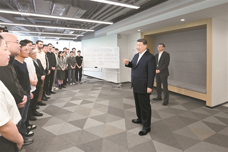 在“模速空间”3层,一场以“下一代智能体的自主进化”为主题的沙龙正在举行。习近平高兴地参与进来,同现场青年创新人才亲切交流。大家纷纷向总书记汇报所在团队开展人工智能技术研究和产业应用的收获体会。习近平对大家说,人工智能是年轻的事业,也是年轻人的事业。我们正在全面推进强国建设、民族复兴伟业,正是年轻一代展示才华、大显身手的好时候。实现中华民族的伟大梦想,寄希望于年轻人。大家要怀爱国之心、立报国之志、增强国之能,把个人奋斗同国家前途命运紧紧联系在一起,跑好历史的接力棒,在推进中国式现代化的宽广舞台上绽放绚丽的青春光彩。