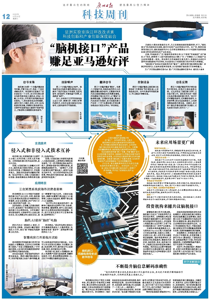 琶洲实验室脑机智能研究中心将围绕脑机接口基础理论、关键技术、系统平台、应用示范等开展全方位、系统性研究。“我们科研的重点首先是保证接口对大脑的安全性,其次是不断提升解码脑信号的准确率和效率,让科研成果真正造福大众。”
