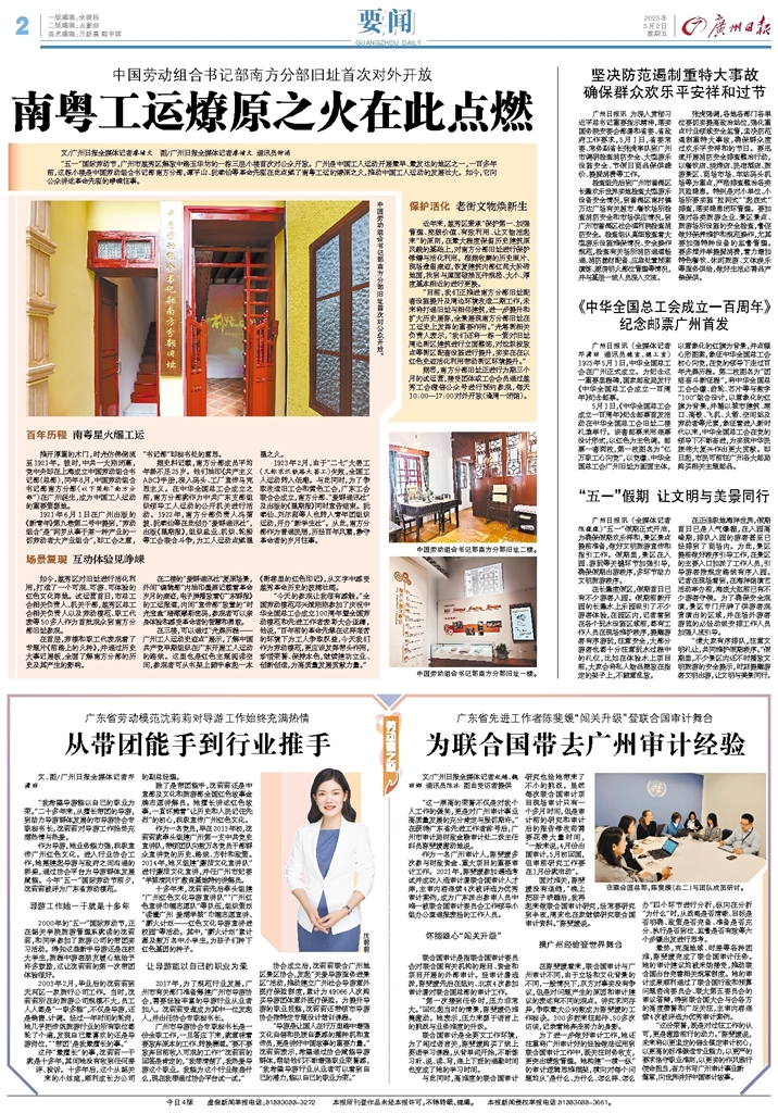 - 南粤工运燎原之火在此点燃 文/广州日报全媒体记者廖靖文 图/广州日报全媒体记者廖靖文 通讯员钟涌 “五一”国际劳动节,广州市越秀区解放中路玉华坊的一栋三层小楼首次对公众开放。广州是中国工人运动开展最早、最发达的地区之