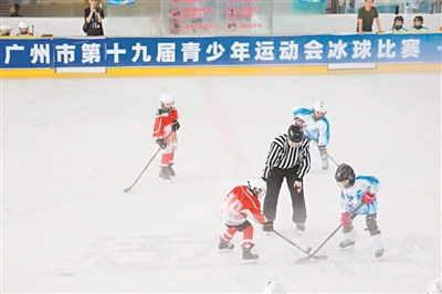 广州日报讯 (全媒体记者 孙嘉晖 通讯员 陈宋华)5月1日,广州市第十九届青少年运动会冰球比赛在优托邦活力基地真冰溜冰场挥杆开赛。