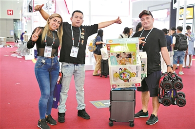 在广州多个商圈,记者看到,不少外国客商手提大包小包,他们青睐数码产品、小家电及文创类商品。广州北京路广百百货大疆门店的员工介绍:“大疆产品在海外有知名度,外商过来了解后成交率不错。”