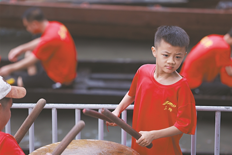 晨曦微露,随着一声嘹亮的“吉时到”,龙船坊内鼓声震天。沉睡了一年的龙船破水而出,宛如巨龙苏醒。