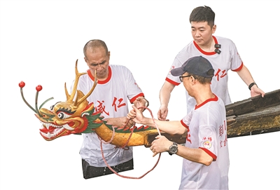 广州日报讯 (全媒体记者何钻莹 通讯员池焰铖)5月5日,天河区石牌村上百位桡手齐聚黄埔“老表村”双岗村龙船坊举行起龙仪式。
