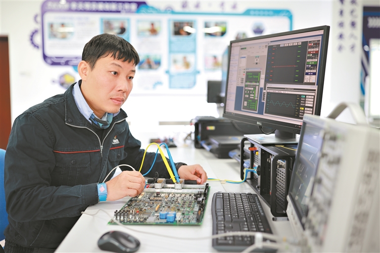 2005年广州地铁筹建电子班时,入司5年的李天明担任首任班长。面对国内技术空白,他带领3人班组建立电子部件自主维修体系,逐步发展成行业领先团队。他主导的列车牵引系统PU模块攻关工程,成功破解国外技术封锁,通过建立大功率器件检测体系、制定国产化技改方案,累计完成深度维修651台次、国产化技改163台,节约成本超8000万元。