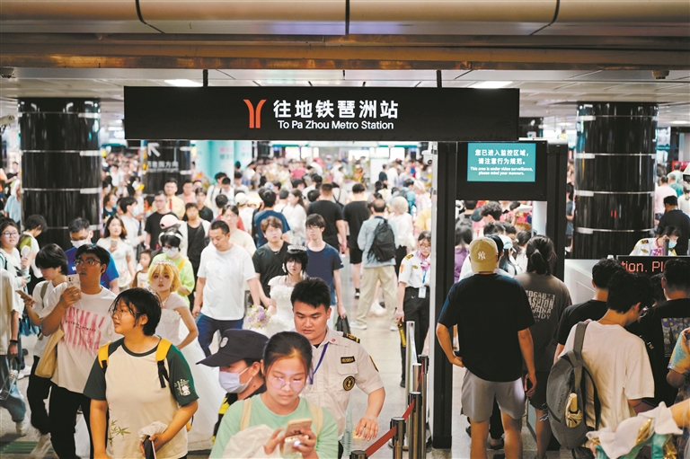 记者了解到,第137届广交会期间,毗邻会展中心的琶洲站、新港东站在广交会期间总进站分别为113.4万人次、66万人次,总出站则为99.3万人次、59.1万人次,日均进站客流均较日常增幅明显。