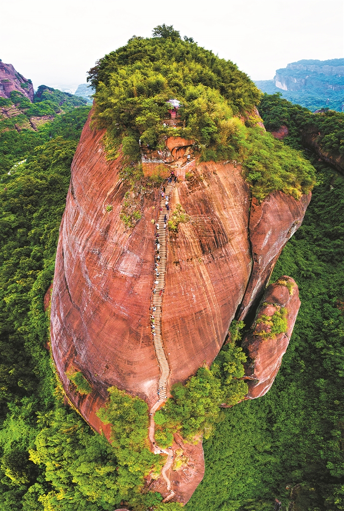 南岭巍巍,盆岭镶嵌,层峦叠嶂。大自然用上亿年的精雕细刻,将盆地“雕刻”成一片“色如渥丹,灿若明霞”的胜景——丹霞山。它不仅是地质名山,是亿万年来地质演变的“活化石”;它也是人文名山,数千年来,张九龄、韩愈、苏轼等文人墨客来此写下岭南文化的故事;它还是科学名山,近百年来,一代代科学家接力研究,让中国丹霞这张中国名片响彻全球。近年来,它更是“绿美广东、和谐共生”的生态名山,学者与游人纷至沓来,领略万古丹霞之美,品味神仙之宅的魅力。