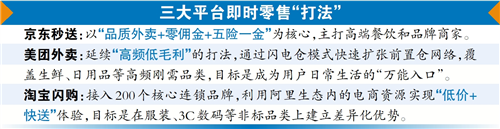 随着外卖战事升级,京东通过“零佣金”政策吸引连锁商超布局广阔的即时零售业务,阿里则通过内部整合淘宝、饿了么、盒马等渠道资源,并接入200个核心连锁品牌深化业务。4月底,美团宣布美团外卖柜始终对全行业外卖小哥开放。