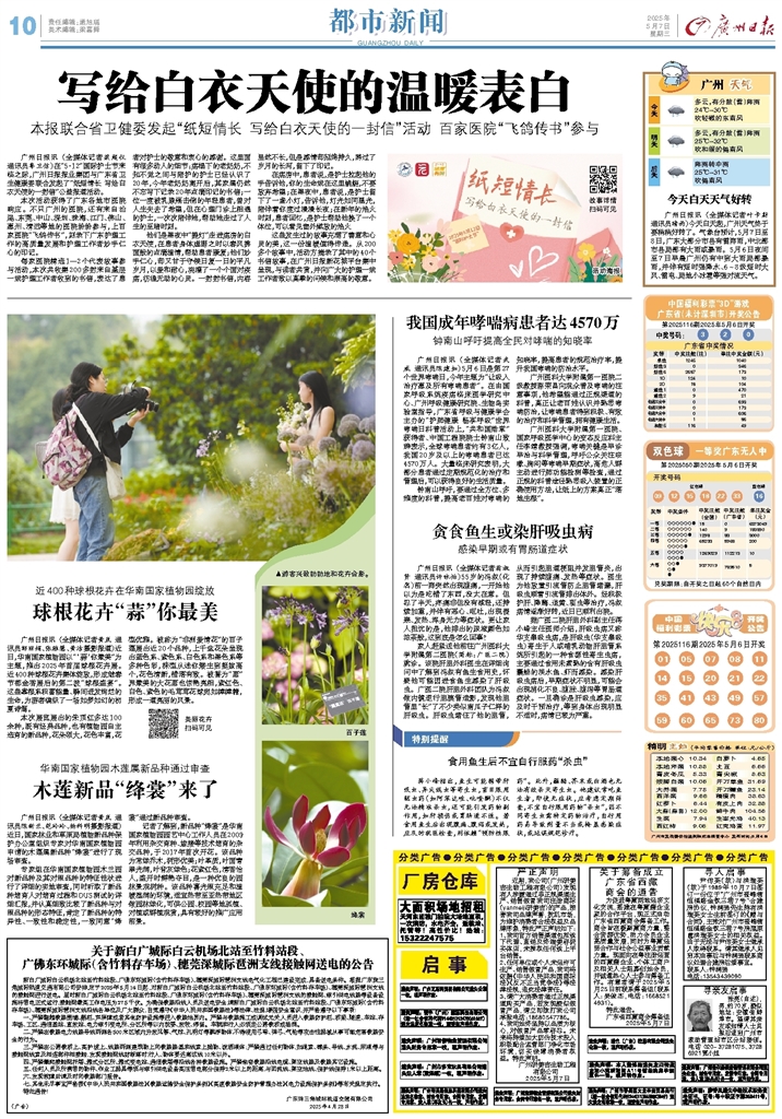 - 写给白衣天使的温暖表白 广州日报讯 (全媒体记者梁超仪 通讯员粤卫信)在“5·12”国际护士节来临之际,广州日报报业集团与广东省卫生健康委联合发起了“纸短情长 写给白衣天使的一封信”公益报道活动。 本次活动获得了广东
