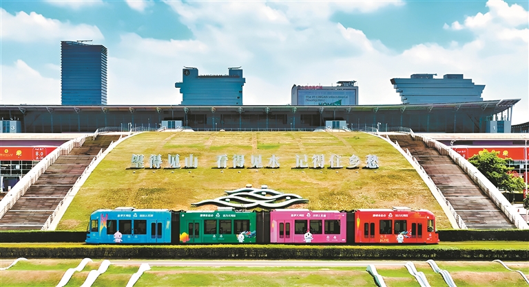 “全运号”主题列车行驶中。 广州日报全媒体记者 骆昌威 摄