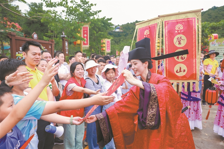 记者从东莞观音山获悉,本届状元文化节,互动体验将全面提升。游客可参与“行状元礼、过状元门、着状元袍”等特色活动。景区还特别打造了古风状元巡游,“状元郎”(特型演员)会与游客进行互动,派发吉祥牌。