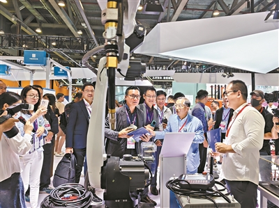 在博览会现场,中建四局研发的“云端建造工厂”吸引了不少海外客商。“云端建造工厂”就像把工厂“搬到”了工地上,施工作业区域遮阳率超过85%,集成通风降温系统,可将作业面的体感温度降低8℃—10℃,营造舒适的施工环境;在内部,多款智能建筑机器人上阵,实现自动化、流水化施工。据悉,“云端建造工厂”已应用在中建四局科创大厦、广州环球贸易广场等项目。