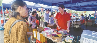 美食摊位上,壮家“五色饭”令人垂涎、竹叶粽咸香软糯、酿豆腐香气四溢,特色农产品琳琅满目;文创展区里,壮绣服饰体验成为热门项目。游客们沉浸式感受壮乡风情,品尝美食、挑选特产、体验非遗,有力推动了文旅消费升级。