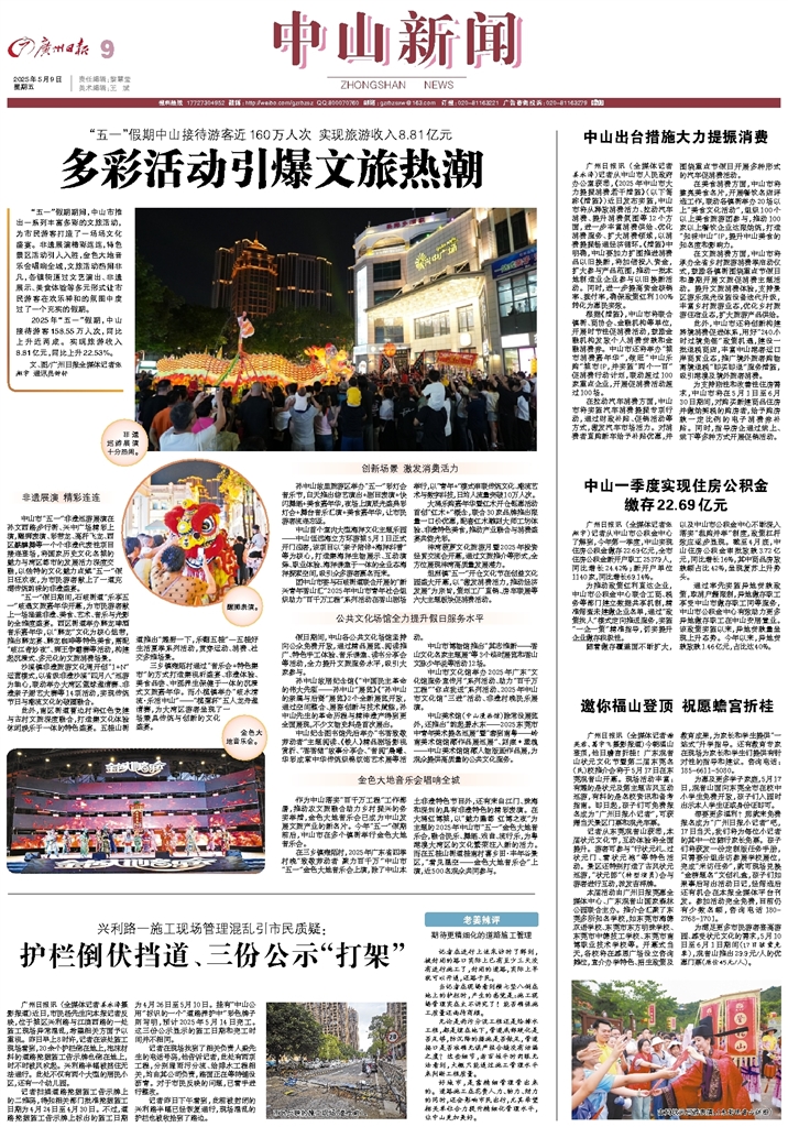 - 多彩活动引爆文旅热潮 “五一”假期期间,中山市推出一系列丰富多彩的文旅活动,为市民游客打造了一场场文化盛宴。非遗展演精彩连连,特色景区活动引人入胜,金色大地音乐会唱响全城,文旅活动热闹非凡,各镇街通过文艺演出、非遗展示