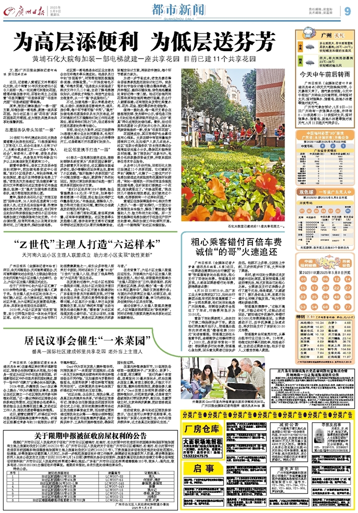 - 为高层添便利 为低层送芬芳 文、图/广州日报全媒体记者何瑞琪 实习生林芷涵 近日,记者踏入黄埔区文冲街道石化大院,这个有着50年历史的老旧小区令人眼前一亮:一处处精巧别致的花园,错落点缀在楼宇间,芬香的泥土上还竖着“邻里