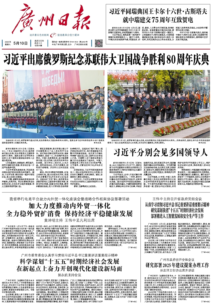 - 习近平出席俄罗斯纪念苏联伟大卫国战争胜利80周年庆典 新华社莫斯科5月9日电 (记者倪四义、丁得启)当地时间5月9日,俄罗斯举行盛大庆典,纪念苏联伟大卫国战争胜利80周年。国家主席习近平和来自世界20多个国家及国际组织领导人应邀出席庆典。 5月的