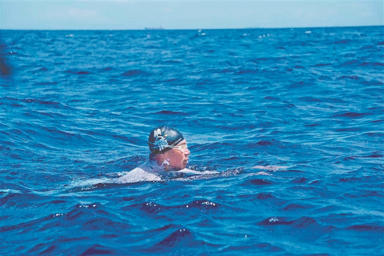 面对这片充满未知与危险的海域,陈苏伟展现出了东莞人特有的敢为人先、顽强拼搏的精神。在横渡过程中,陈苏伟遭遇了强风、巨浪和复杂海流的严峻考验,但他凭借丰富的经验和顽强的意志,精准调整泳姿和路线,一次又一次地化解了危机,稳步向对岸前进,最终以比预定时间快了约2小时的成绩,在摩洛哥丹吉尔海岸成功登陆。