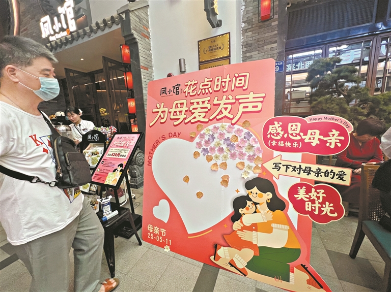 广州日报讯 (全媒体记者曾繁莹)“还好提前订了位陪妈妈吃饭,现场要等一个多小时,不过也很值得”“今天用餐完,获赠母亲节鲜花,很开心”“请妈妈吃燕窝,餐厅还送了一份给我”……5月11日是母亲节,风和日丽,广州餐饮市场迎来一波消费小热潮。记者走访市场时,看见一幕幕温馨而欢乐的阖家欢聚用餐场景。本地餐饮商家通过创新产品、推出优惠及融合文旅体验,进一步激发市场潜力,助力“食在广州”金字招牌持续擦亮,折射出广州的蓬勃消费活力与消费升级的多元趋势。