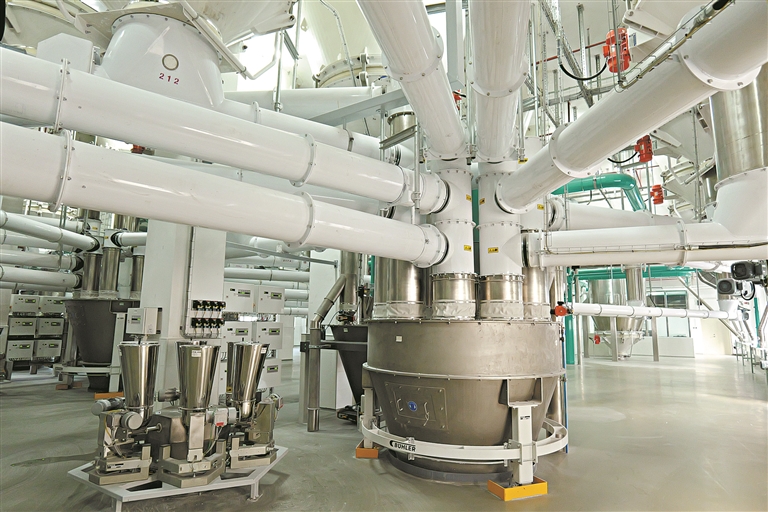 据透露,这座智能面粉厂的投用,预计每年可以节省87万元电费,并同步建设储能项目,节省能源消耗。工厂还设置了除尘设备、防爆装置等,切实做到环保、安全。工厂“新风系统”的设置也历经多次攻坚,“南方湿度比较大、温度比较高,并不适合做这个系统,但我们攻克了多项难关,最终完成了布设。”相关负责人说。
