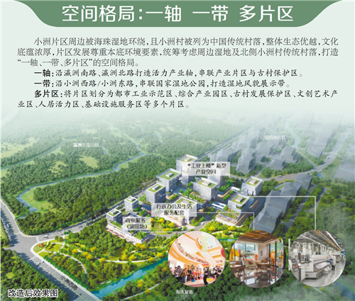 规划提出,将小洲村村镇工业集聚区打造为后航道服务型制造创新带中的现代都市工业产业高地、环海珠湿地价值圈的生产生活生态融合发展示范园区,建设以人工智能与数字经济、绿色智造等为主导功能的珠江后航道现代都市工业标杆。依托片区周边基础优势,沿产业活力轴逐步导入生态生活中心、现代都市产业示范区,联动北侧小洲村文商旅融合消费圈及南侧科创型高端商务总部区等功能区。