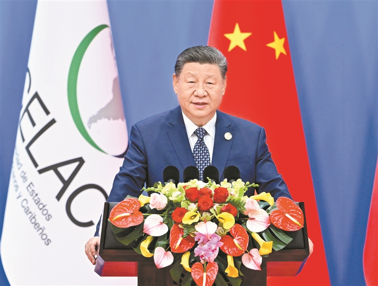习近平最后强调,无论国际风云如何变化,中国始终做拉美和加勒比国家的好朋友、好伙伴,同拉方在各自现代化征程上并肩前行,共同谱写构建中拉命运共同体新篇章。