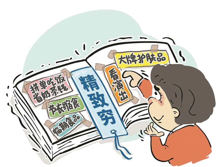 账本上每一笔开支都锱铢必较,却愿意为某些瞬间支付不成比例的代价,这就是当代年轻人“精致穷”的消费哲学。反对者认为,“精致穷”是一种消费主义、物质主义和享乐主义心态。每个人的消费观都不尽相同,年轻人愿意为自己偏好或认可的东西买单,也是大家生活水平上升、消费能力提高的表现,反映了一种对自我、对未来的积极乐观态度。只要自食其力,又在其能力范围内,大家都有权追求品质消费。过度解读,大可不必。 (傅雯慧)