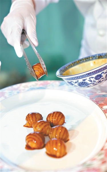 广州大厨跨越山海赴渝秀绝技。粤菜烹饪技艺非遗代表性项目传承人、广州酒家集团出品总监蔡伟域现场展示了“众志成城”禾秆冚珍珠这道非遗美食,五花肉、绿豆蓉、禾秆草等几味简单的食材经大厨巧手烹饪,在锅中碰撞出一道风味十足的特色珍馐,令人垂涎欲滴。“这道菜取名‘众志成城’,象征着运动员们团结一心、共同努力的精神。你看,肉片紧紧团在一起,包裹住绿豆蓉,代表着团队协作和互相支持,如同运动员们在赛场上的默契配合,与十五运会中运动员们追求卓越、共同为荣誉而战的体育精神相呼应。”蔡伟域介绍道。
