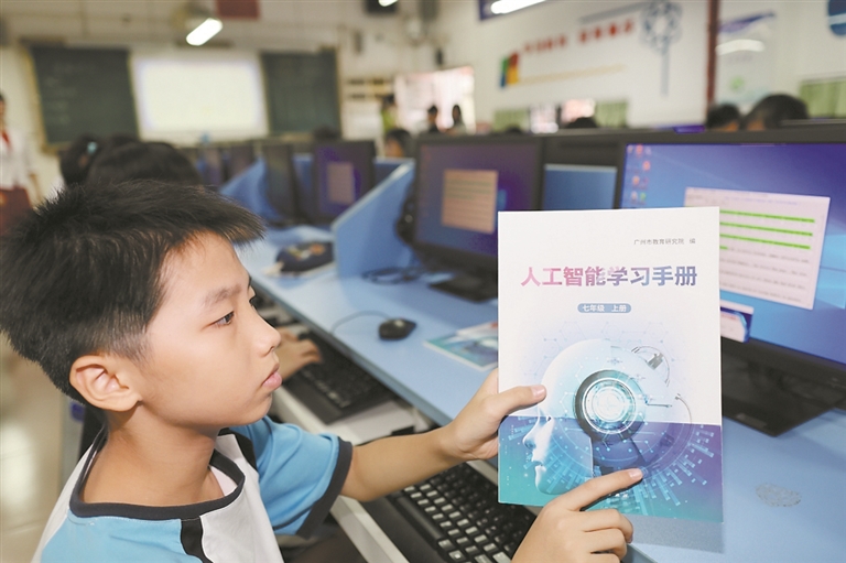作为教育大市,广州早已先行先试,迈出推进人工智能教育的步伐——2018年,广州启动编写地方人工智能教材。2019年,广州市成功入选全国首批“智慧教育示范区”,制定《广州市创建全国“智慧教育示范区”实施方案》,将人工智能教育作为重点工程,进行义务教育阶段人工智能课程实验,设立荔湾、天河、黄埔3个市级实验区和147所实验校。2021年9月,广州市入选教育部第二批人工智能助推教师队伍建设试点地区名单。2022年9月起,广州编制的全国首套经省级教材审定部门审定通过的中小学人工智能教材,已在全市中小学校落地使用。2023年,推动1—8年级人工智能教育普及入选广州市民生实事项目。