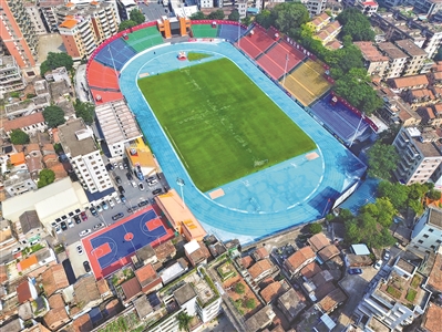 走进云秀山体育场,场内一个硕大的狮头装置连同观众席上的数个小狮头点缀着场地。这座始建于20世纪五六十年代的万人体育场,去年刚以146万人次入场、43亿流量的“西甲”神话出圈,如今在经过改造后,只需微调便能切换“全运模式”。“我们从去年开始便陆续进行改造。”三水区赛事执委会的工作人员黄贤海介绍,目前,只需要进行一些微调便能迎接全运会。值得一提的是,云秀山体育场藏身于三水西南的筷子街中,这里有着三水最浓厚的烟火气,在这里踢球似乎是一场与市井生活的共舞。